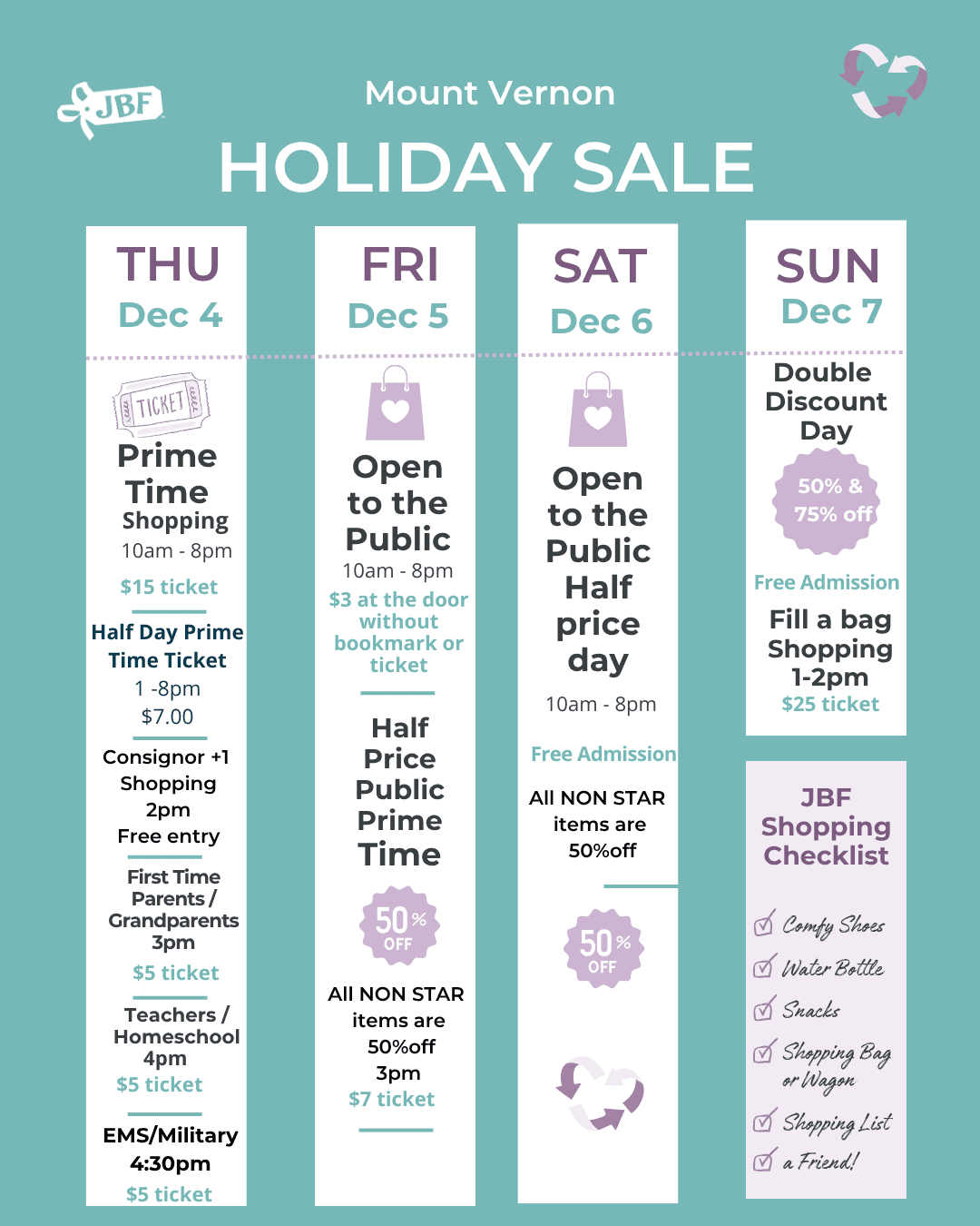 JBF prices are already low, these discount days are where the HUGE bargains can be found!